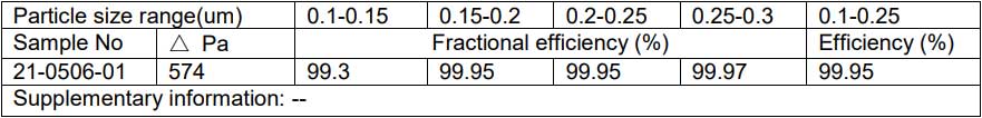 Eficiencia comprobada del 99,95% para partículas de tamaño 0.1 a 2.5μm
